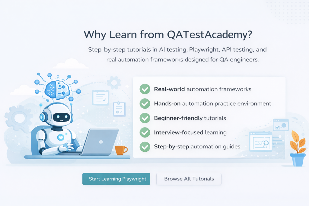 QATestAcademy provides step-by-step automation testing tutorials covering Playwright, AI testing, and real automation frameworks. These tutorials are designed to help QA engineers learn modern test automation with practical examples and hands-on practice.