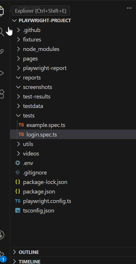 For now we will create the whole test case inside login.spec.ts file, but we will optimize it step by step seperating the page objects , env variables and tests into different files as we move ahead. This will give you an idea how to build a framework from scratch