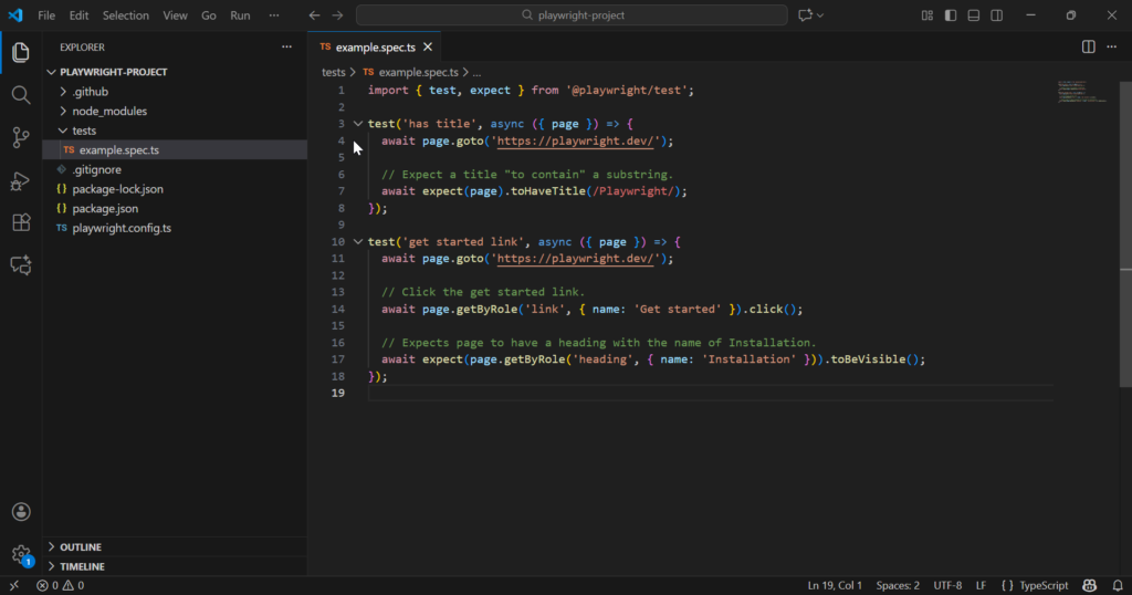 Now since installation is complete, lets understand the structure of the framework created by playwright