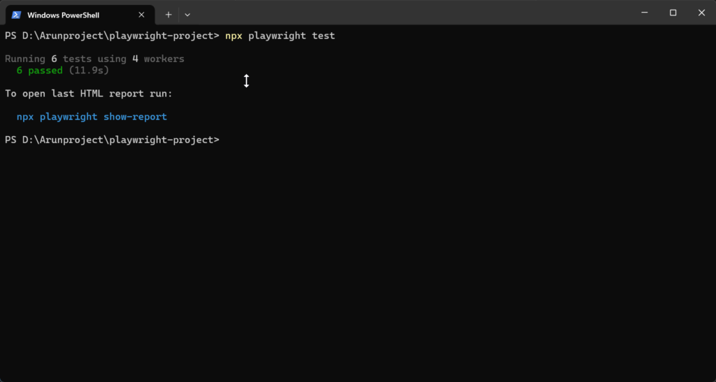 You would have observed that browser didn’t open in screen , all the test execution happened in the background, this is called headless execution. Headless execution in Playwright means running your automation tests without opening the browser on the screen. The browser runs silently in the background, making the tests faster and ideal for CI/CD pipelines where no display is available. This is the default mode used in real projects to save time and system resources while running large test suites